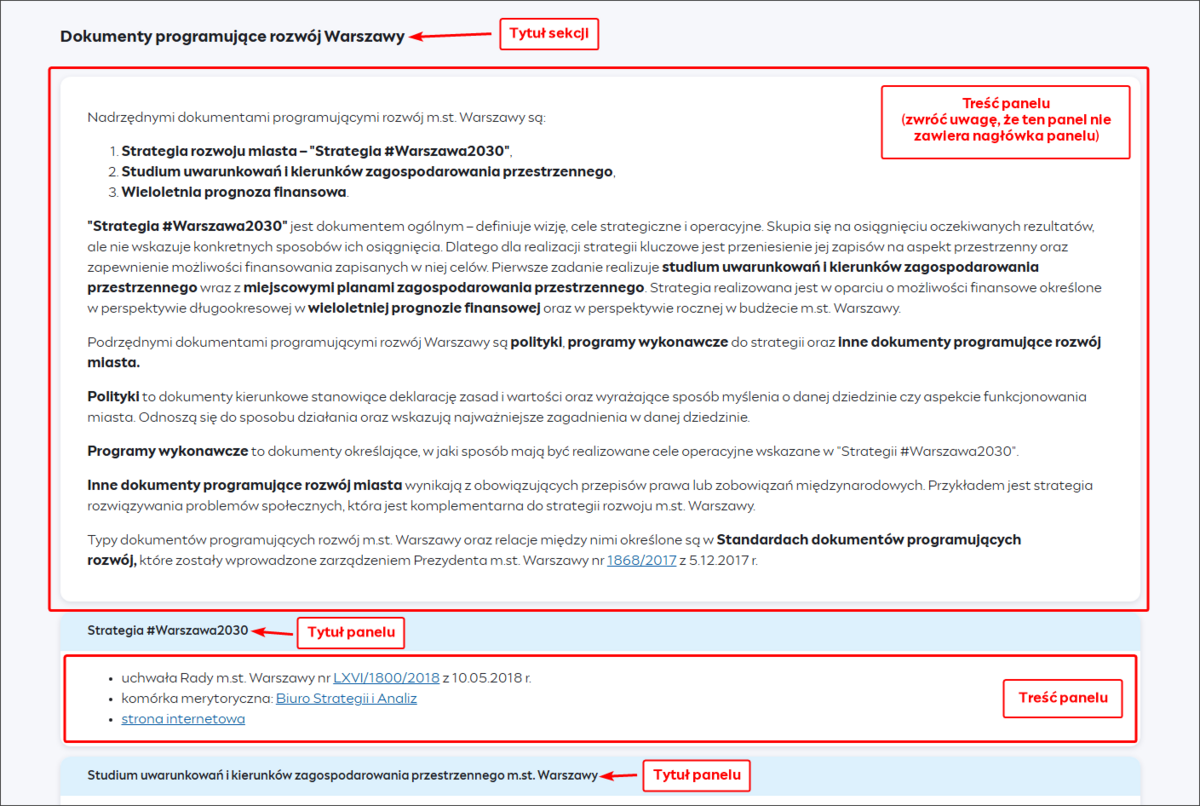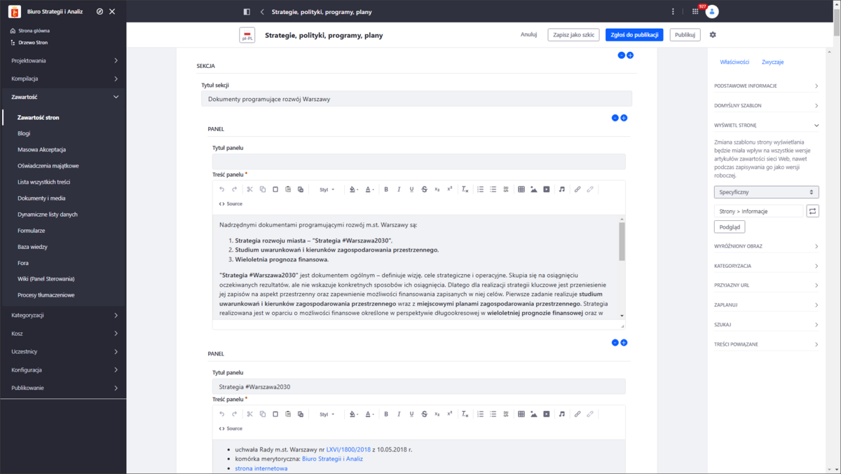 - przykładem wykorzystania Rozszerzonej zawartości stron jest artykuł Strategie, polityki, programy, plany