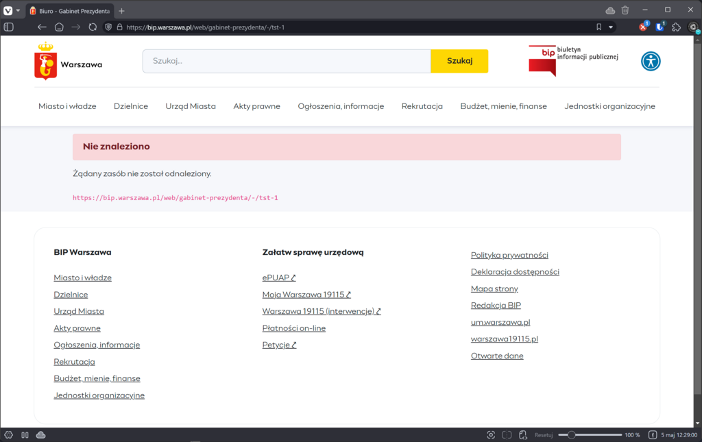 - drugie pole (opisane "Wybierz wyświetl stronę"):